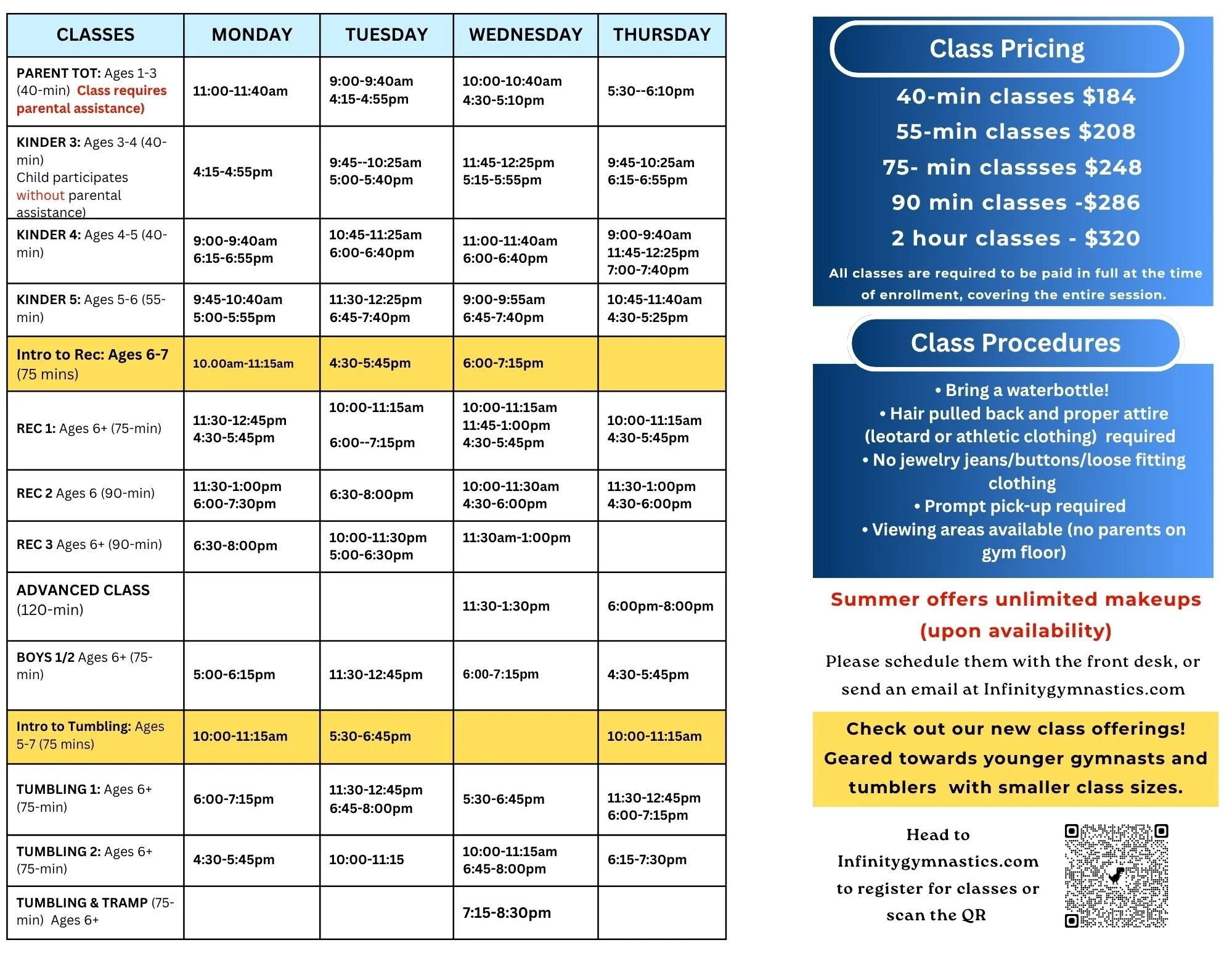 SUMMER CLASS SCHEDULE OUT NOW! REGISTRATION OPENS MAY 1ST AT NOON!